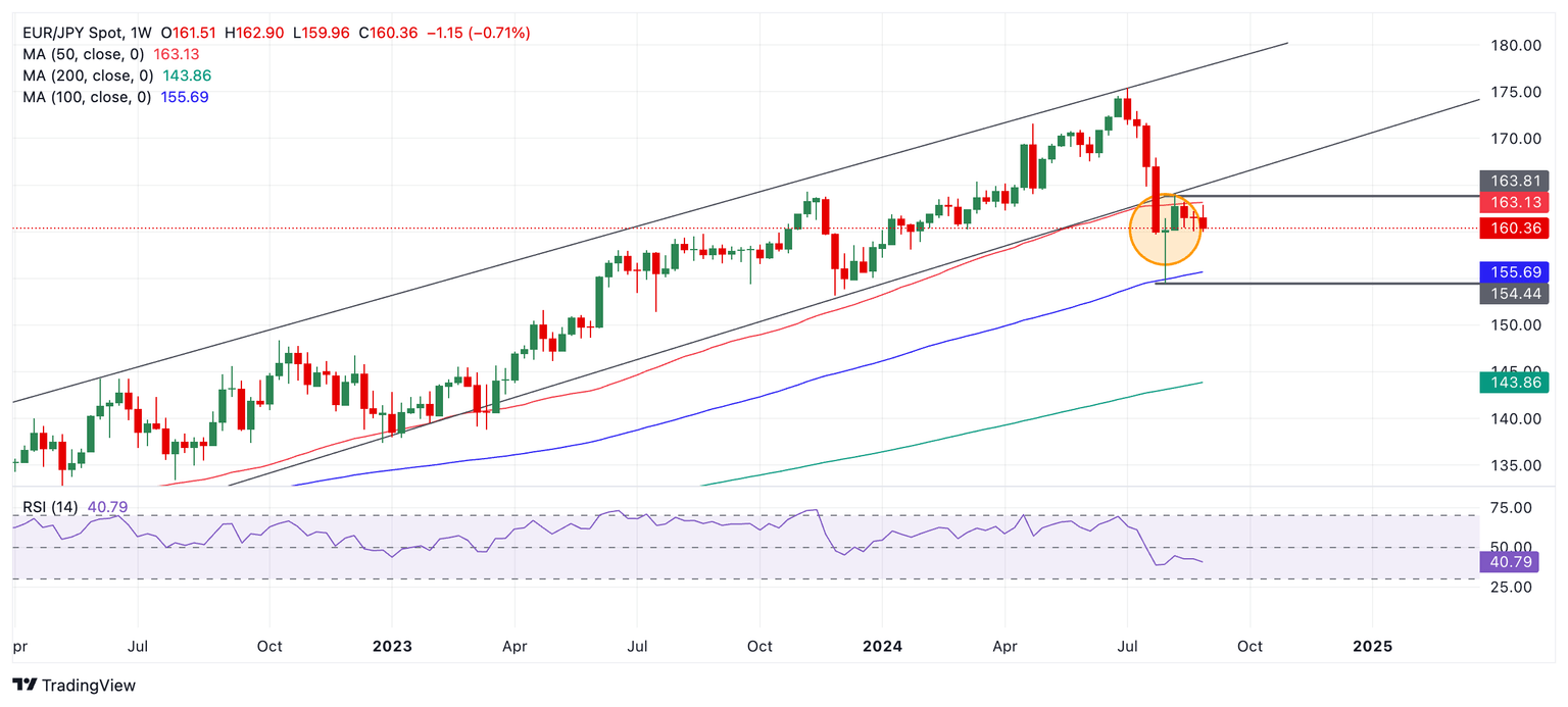- EUR/JPY has been in an uptrend for over two years, and despite a breakdown in July, it may still be intact.