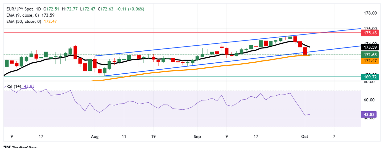 EUR/JPY Price Forecast: Rebounds from 172.50 support near 50-day EMA