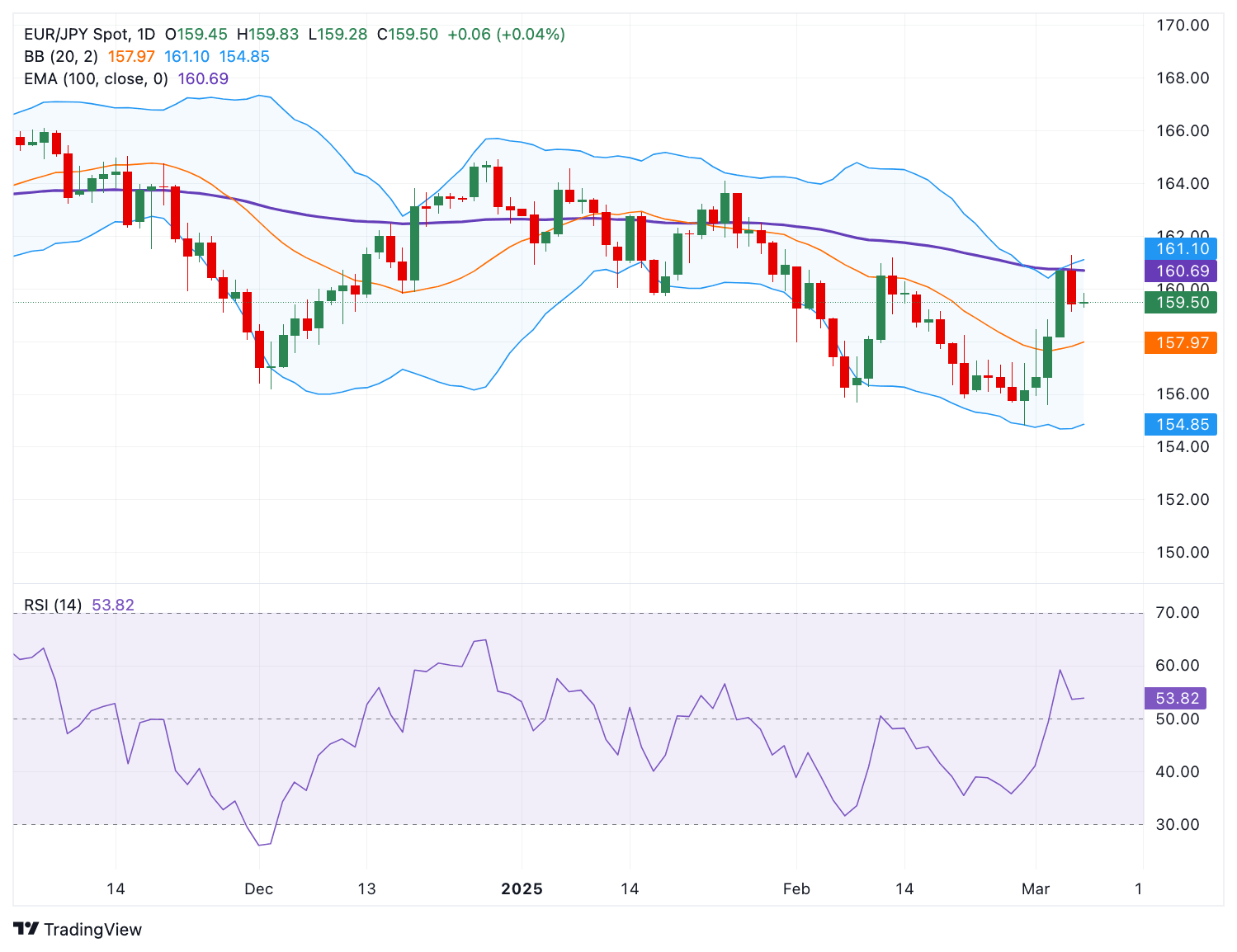 The EUR/JPY cross loses traction to around 159.40 during the early European session on Friday. The uncertainty and risk-off sentiment in the markets boost the safe-haven flows, benefiting the Japanese Yen (JPY). Investors await the release of the Eurozone Gross Domestic Product (GDP) for the fourth quarter, which is due later on Friday.