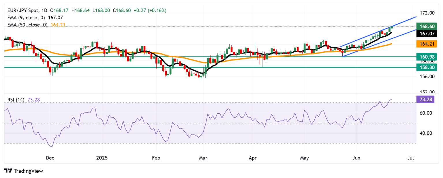 EUR/JPY Price Forecast: Rises above 168.50, hits fresh eleven-month highs