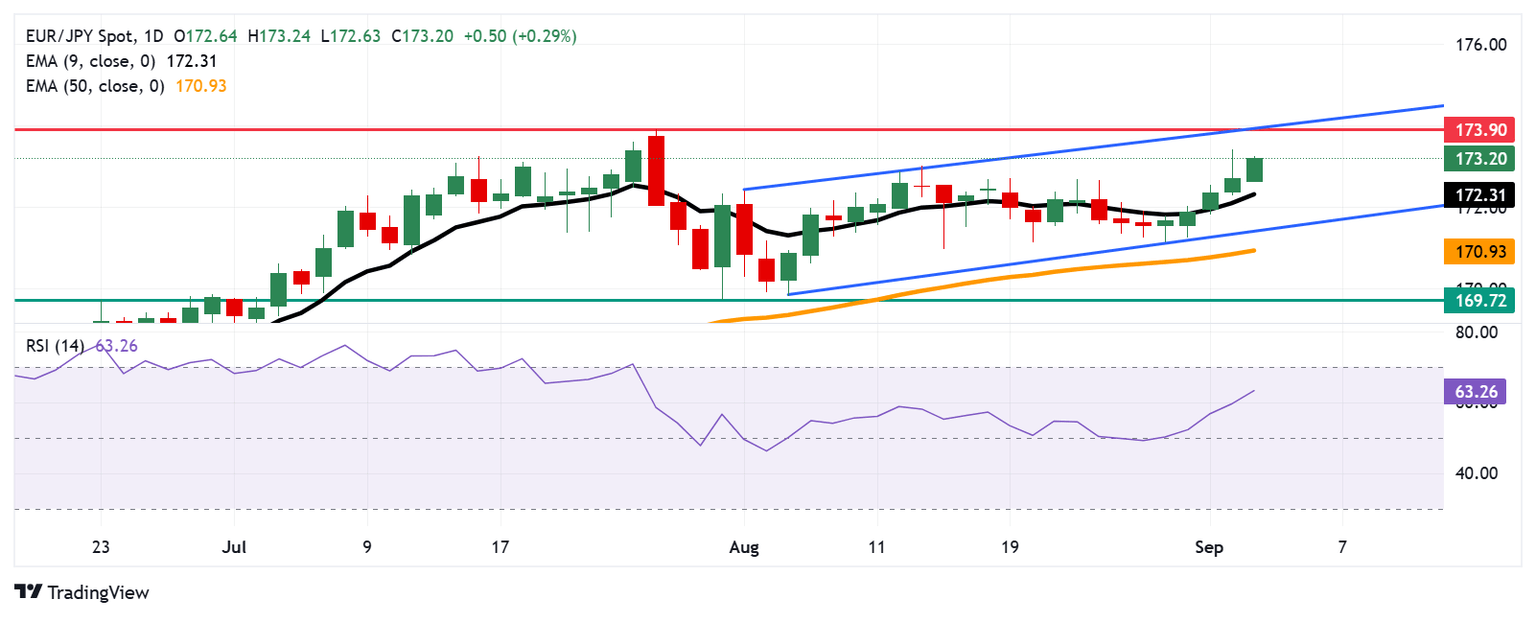 - EUR/JPY may find its primary barrier at 173.90, the highest since July 2024.