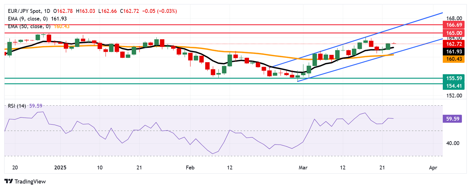 EUR/JPY Price Forecast: Tests 163.00 barrier after breaking above nine-day EMA