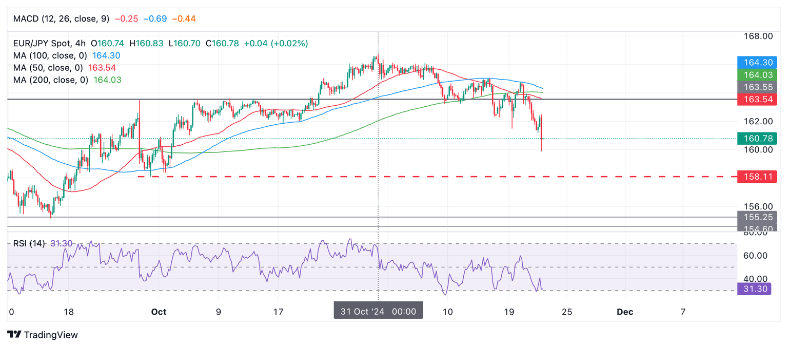 EUR/JPY Price Prediction: November bear trend unfolds
