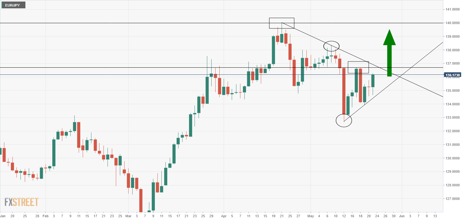 - EUR/JPY is above 136.00 and eyeing last week’s highs following hawkish ECB commentary.