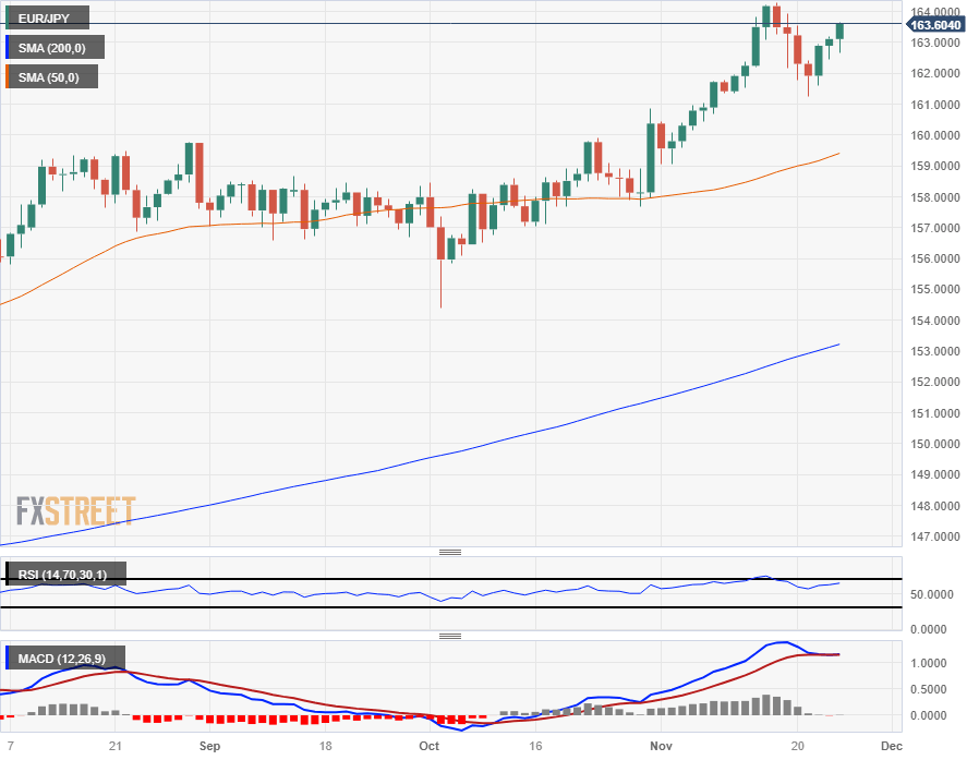 EUR/JPY sets a late high for the week above 163.60 in Friday risk rally