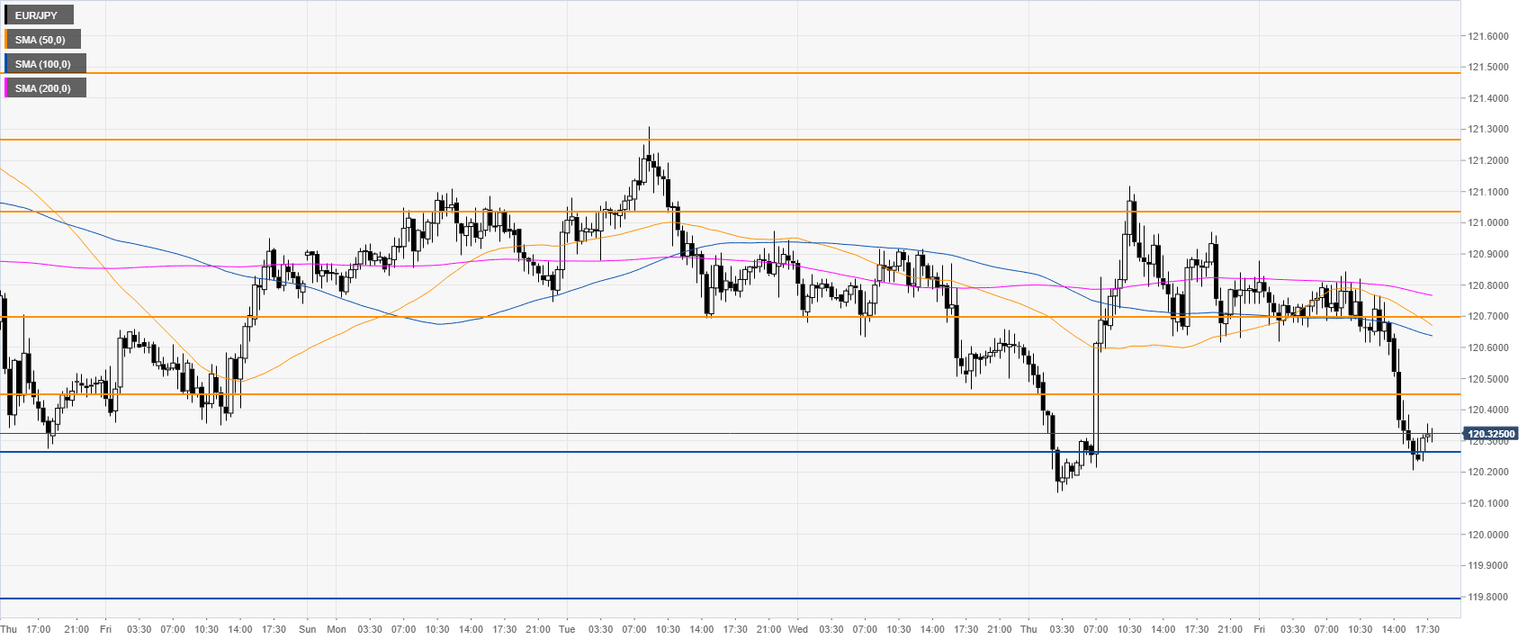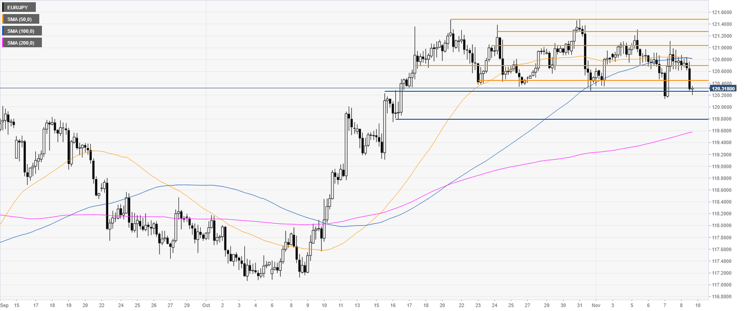 EUR/JPY is trading in a downtrend below the 200-day simple moving average (DMA). However, last month the cross had a bull rally to the 121.00 figure. The market entered a consolidation there.