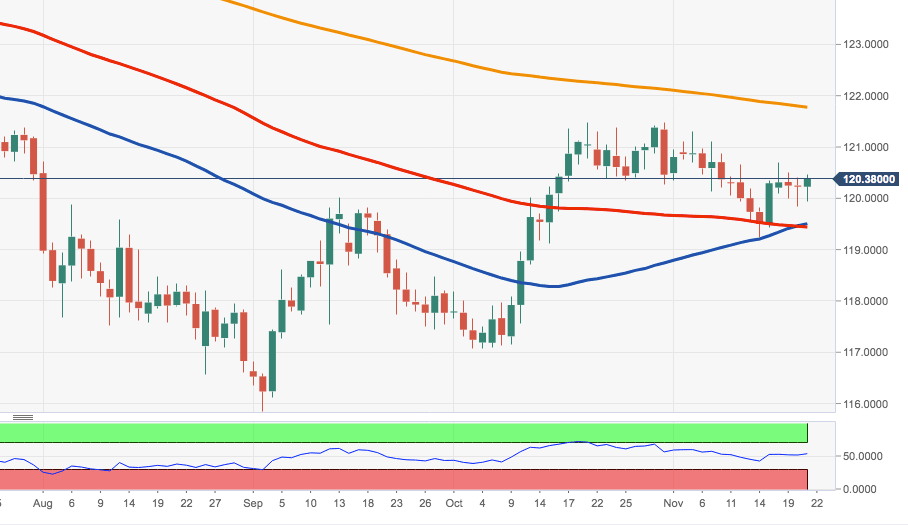 The resumption of the downside pressure is expected to meet initial support in the 119.50/24 band, where converge the 100-day and 55-day SMAs as well as monthly lows recorded on November 14th.