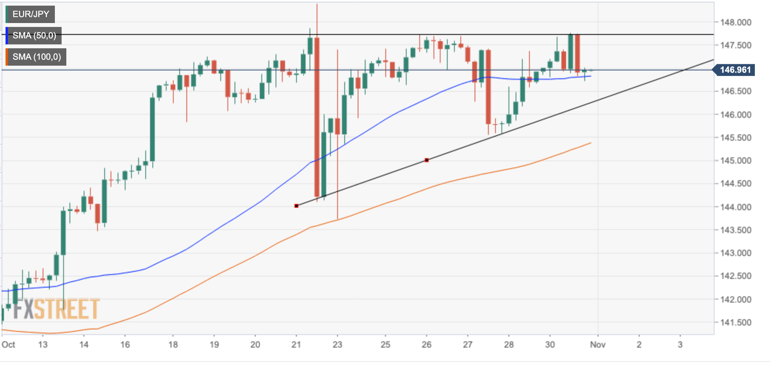 On the upside, a successful move above 147.80 would increase bullish traction, which could push the pair towards the October 17 high at 148.40 ahead of the 150.00 psychological level.