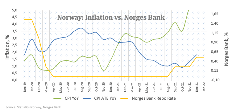 The Scandinavian central bank matched estimates on Thursday although it reiterated its intention to hike the key rate at the March event. The Norges Bank justified the decision on the solid performance of Norwegian fundamentals and noted that the elevated underlying inflation is now approaching the bank’s target.