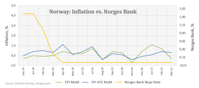 Indeed, the Scandinavian central bank matched forecasts and left the key rate unchanged at 0.00% at its meeting on Thursday. The Norges Bank once again acknowledged the solid fundamentals of the Nordic economy as well as the good pace of the vaccine rollout, all morphing into extra support to the already strong growth prospects.