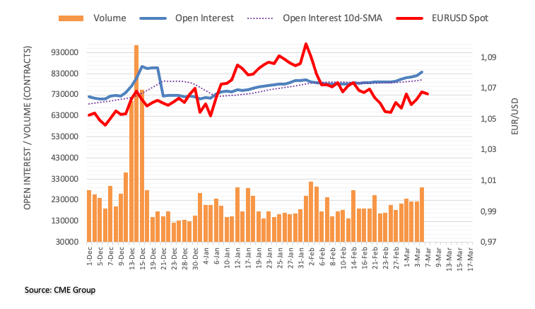 Renewed selling pressure forces EUR/USD to give away part of the earlier bull run to the boundaries of 1.0700 the figure on turnaround Tuesday.