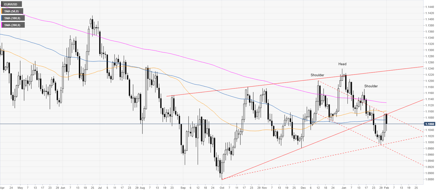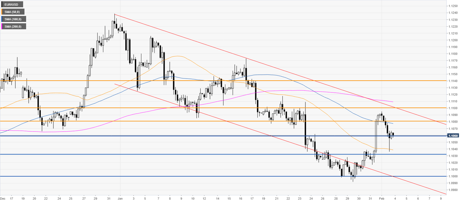 EUR/USD is trading in a bear channel below the 100 and 200 SMAs. The spot almost reached the 1.1100 resistance and is now easing from this swing high. As the euro remains weak, a break below the 1.1060 support can lead to a retest of 1.1033 and 1.1000 figure. On the flip side, a break above the 1.1100/1.1140 resistance zone could endanger the bearish scenario, according to the