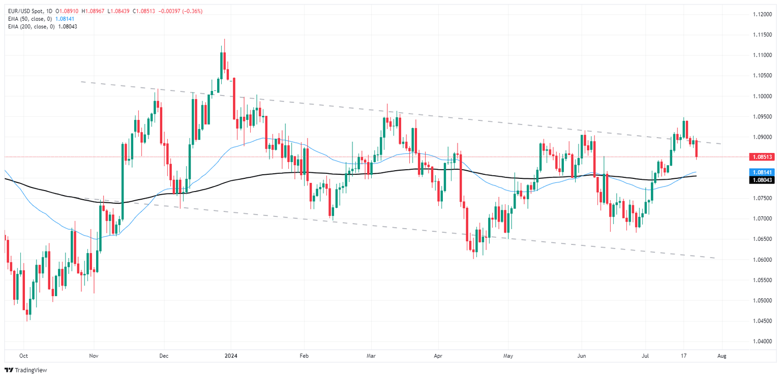 The Euro’s early decline on Tuesday has sent EUR/USD into fresh lows near 1.0850, and the pair is scrambling to find a foothold ahead of Wednesday’s meaningful trading window. The Fiber has declined nearly a full percent since getting turned around from a near-term high of 1.0948.