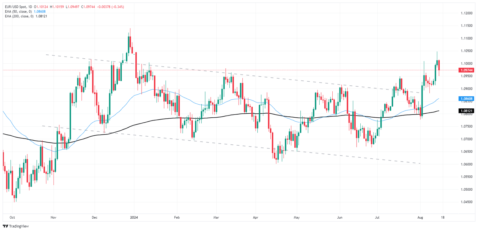 EUR/USD snapped a recent winning streak, tumbling back below the 1.1000 major handle on Friday. Bulls appear set to run out of gas and near-term momentum threatens to drag the Fiber back into a rough descending channel that has plagued the pair through 2024.
