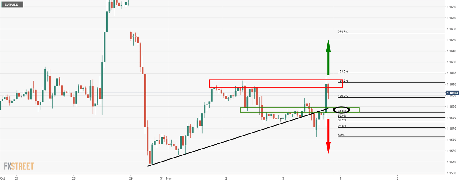 Nevertheless, the price made a fresh high during the chairman's presser, touching 1.1616 at the time of writing as Powell attempts to dial down inflation risks. The range, so far today, has been between 1.1562 and 1.1616.