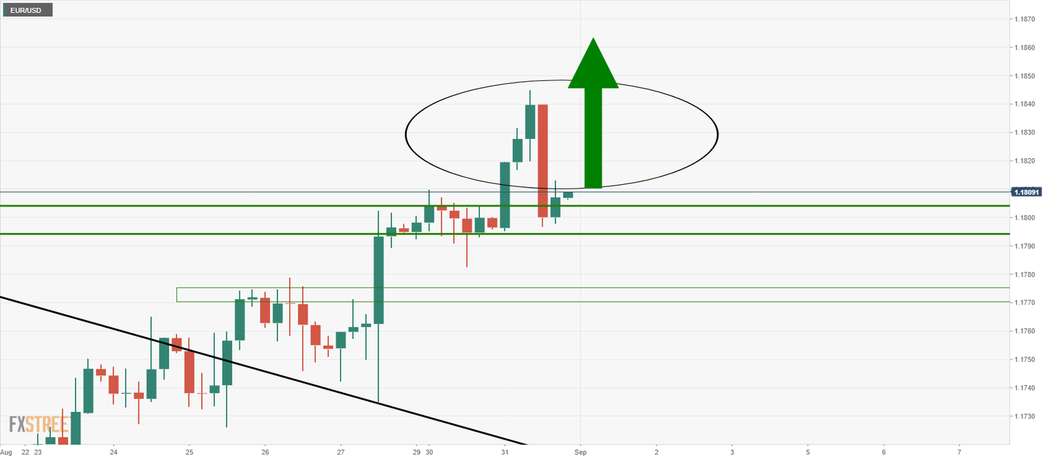 EUR/USD bulls take out daily resistance at month-end