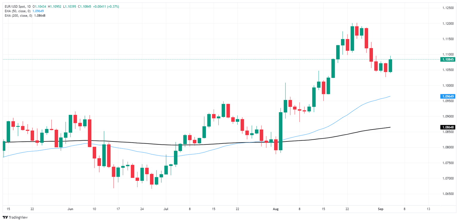 EUR/USD caught a bid on Wednesday, rebounding from a recent selloff and catching technical support from 1.1050. Despite the topside tilt to price action in the midweek, the pair remains hobbled below the 1.1100 handle. US jobs data will remain the key focus for markets this week in the run-up to Friday’s US Nonfarm Payrolls (NFP).