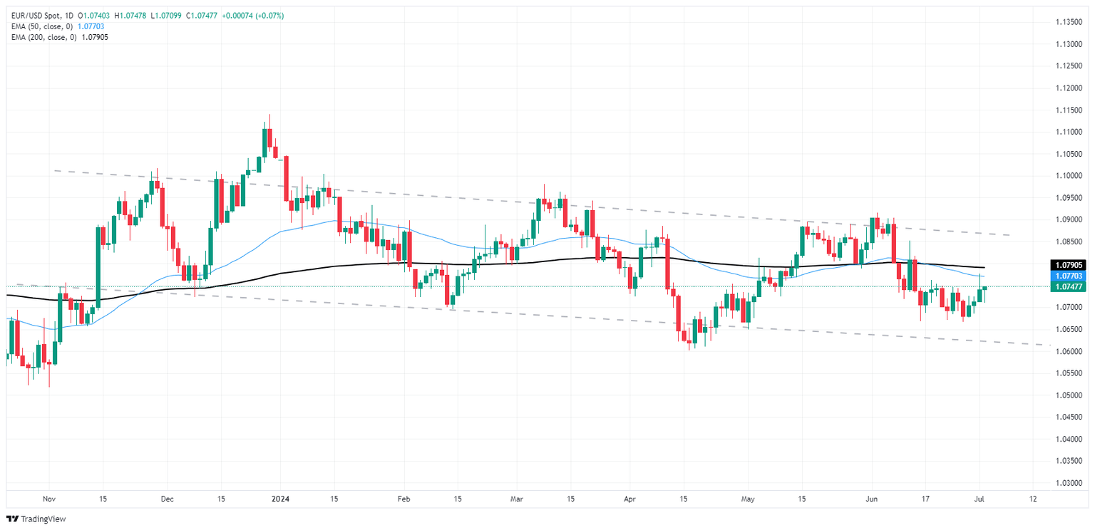 EUR/USD spent Tuesday in a churning pattern, cycling just below 1.075 as the pair grapples with finding momentum. Key labor data from the US looms ahead on Friday, and EU economic figures remain scattered throughout the back half of the trading week.