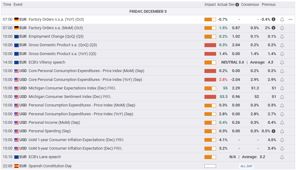 - The Core Personal Consumption Expenditures (PCE) Price Index — the Fed’s favorite inflation gauge — hit 0.2% MoM in September, matching both last months and estimates. On a yearly basis, core PCE dipped from 2.9% to 2.8%, aligned with forecasts.