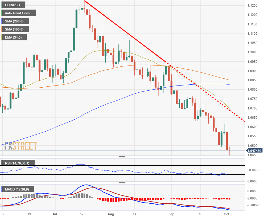 EUR/USD cracks fresh yearly lows near 1.0470 with EU Retail Sales, US NFP in the pipe