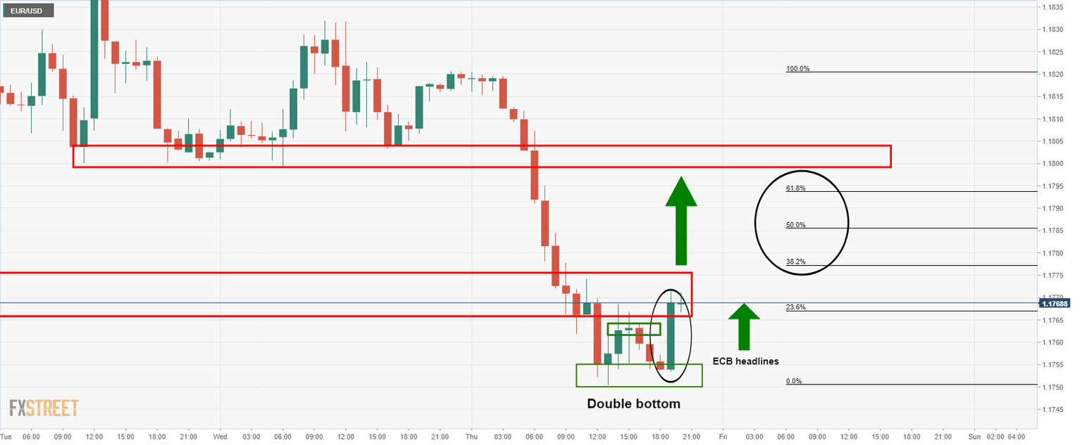 EUR/USD is attempting to correct the hourly bearish trend in late New York, running up to hourly resistance near 1.1770. At the time of writing the pair is down 0.42% at 1.1766 and has fallen on the day from a high of 1.1820 to a low of 1.1750.