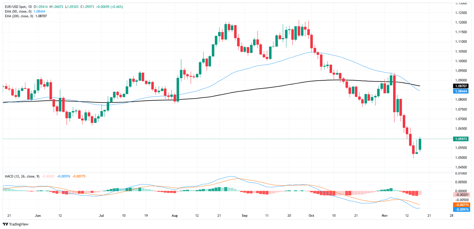EUR/USD tilted into the bullish side on Monday, reaching for the 1.0600 handle after the pair dug in its heels late last week near 1.0500. The pair still remains buried deep in bear country, with price action stuck far below the 200-day Exponential Moving Average (EMA) at 1.0884.