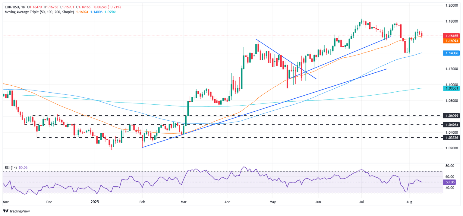 The EUR/USD advance has halted, posting back-to-back bearish candles, though the pair remains above the 1.1600 figure. The Relative Strength Index (RSI) shows that buyers seem to be losing momentum as the index falls below its 50 neutral level, turning bearish.