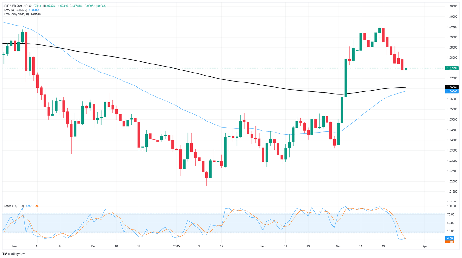 EUR/USD accelerated to the downside on Wednesday, shedding over one-quarter of one percent on Wednesday and skidding back below 1.0750 for the first time since the first week of March. The pair has lost ground for six straight trading days, and souring market sentiment on trade war fears is poised to take more bites out of risk appetite in the days to come as we get closer to April 2.
