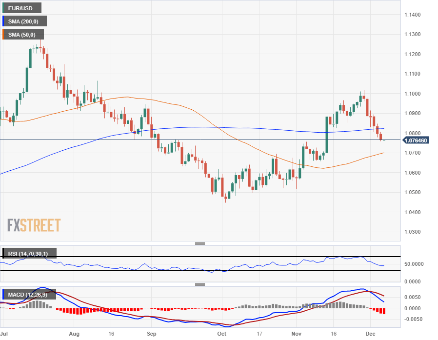 The EUR/USD is extending a backslide through the 200-day Simple Moving Average (SMA), cleanly breaking through the 1.0800 level and heading straight for the 50-day SMA at the 1.0700 handle.