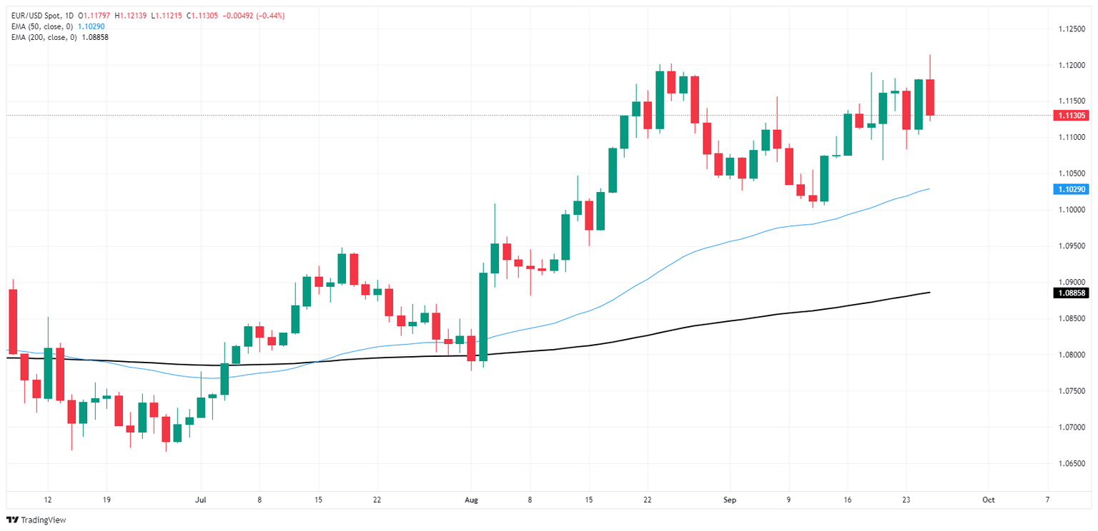 EUR/USD pulled back on Wednesday, tumbling back through the 1.1200 handle and falling into familiar near-term congestion just north of 1.1100. Fiber shed nearly half of a percent after briefly setting a new 14-month high this week.