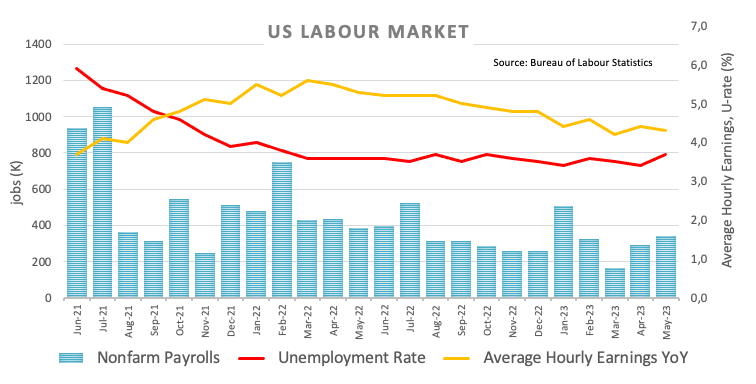 EUR/USD picks up extra selling pressure after the release of the Nonfarm Payrolls showed the US economy added 339K jobs during May, surpassing initial expectations for a gain of 190K jobs. In addition, the April reading was revised up to 294K (from 253K).