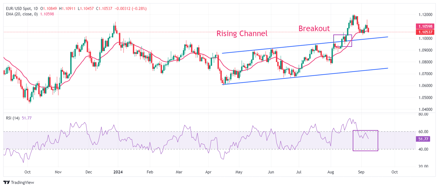 EUR/USD extends its downside below 1.1050 in Monday’s North American session. The major currency pair declines as the US Dollar (USD) strengthens after mixed cues over current labor market health from Friday’s United States (US) Nonfarm payrolls (NFP) report for August, which diminished market expectations for the Federal Reserve (Fed) to reduce interest rates aggressively this month.