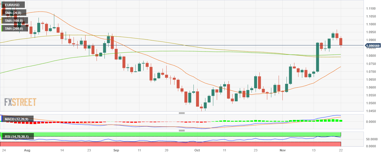 Moreover, as the bears have been steadily gaining ground, it may threaten the position of the pair above the 20, 100, and 200-day Simple Moving Averages (SMAs). The next support stands around 1.0800 (200-day SMA) and at 1.0790 (100-day SMA). On the upside, the 1.0900, 1.09030 and 1.0960 stand as resistances.
