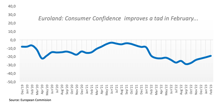 In the domestic calendar, in the meantime, final figures saw the Consumer Confidence in the broader Euroland tracked by the European Commission unchanged at -19 for the current month, while the Economic Sentiment worsened to 99.7 also in February (from 99.9).