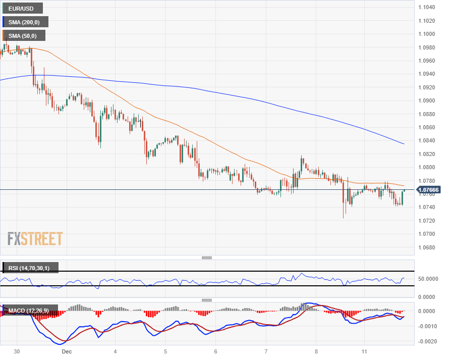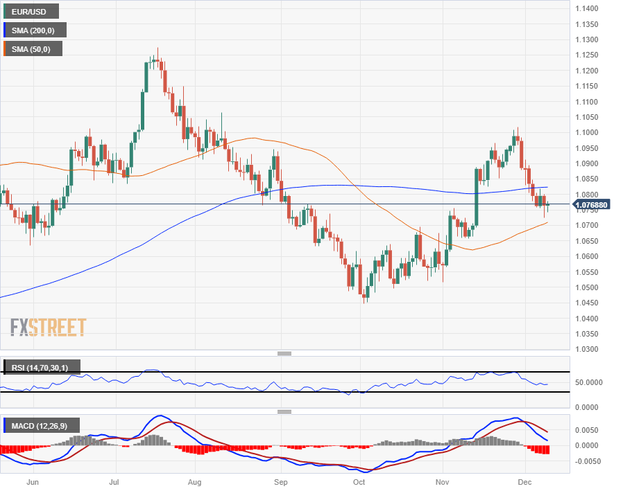 The EUR/USD is flattening on Monday, with the pair cycling the 1.0750 level. The EUR/USD has been trading sideways since slipping back below the 1.0800 handle last week in a short-lived risk bid.