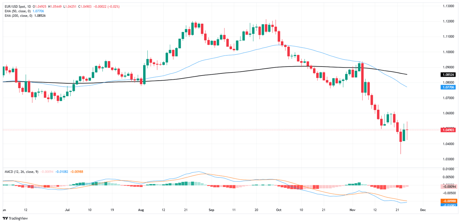 EUR/USD cycled the 1.0500 handle on Tuesday, with Fiber price action drifting into the near-term middle ground as directional momentum drains out of the pair. The economic calendar is an overall thin affair this week, with the US Thanksgiving holiday on Thursday trimming late-week market momentum. US markets will also see limited trading hours on Friday, further crimping the week’s potential for big plays.