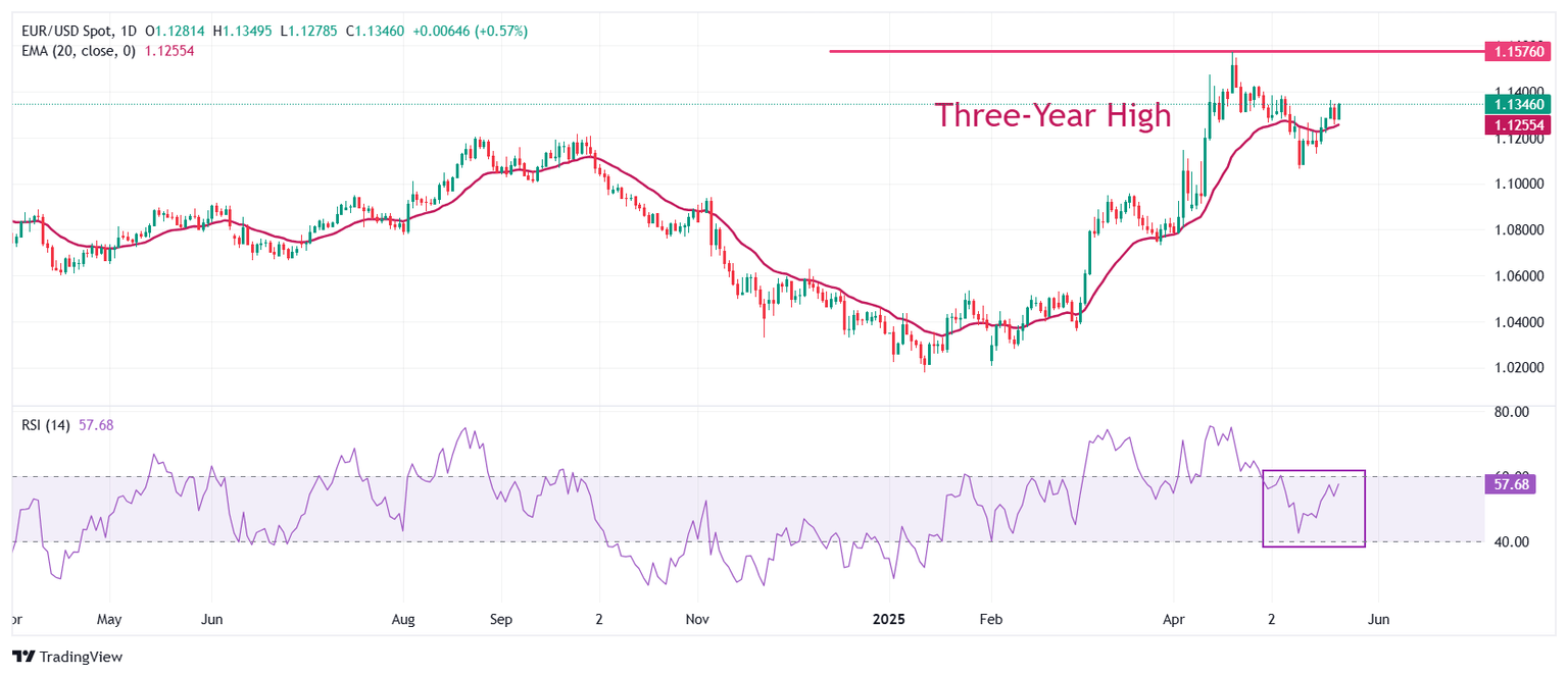 EUR/USD gives up some of its initial gains during North American trading hours on Friday after revisiting the two-week high around 1.1370 earlier in the day. Still, the major currency pair is up around 0.5% near 1.1330. The pair faces selling pressure after United States (US) President Donald Trump threatened to impose 50% flat tariffs on imports from the European Union (EU) through a post on Truth.Social.
