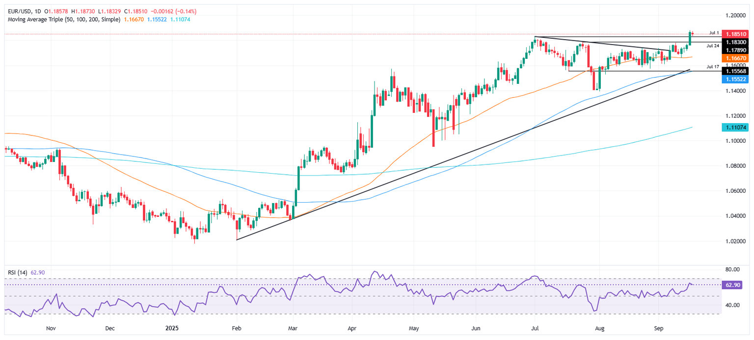 The Euro (EUR) reversed course and dropped against the US Dollar (USD) amid a perceived hawkish cut of 25 bps by the Federal Reserve (Fed) on Wednesday. Traders booked profits after pushing the pair to a yearly high of 1.1918, before reversing 100 pips, towards its current price. EUR/USD trades at 1.1812, down 0.48%.