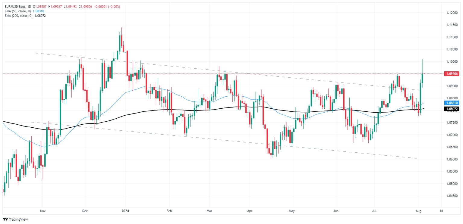 EUR/USD scrambled for higher ground on Monday, launching bids into 1.1000 before settling back into a familiar range near 1.0950 and failing to set a fresh high for 2024. Broad-market expectations for rate cuts from the Federal Reserve (Fed) have run well ahead of the curve, with investors hoping for an initial double-cut from the Fed in September.