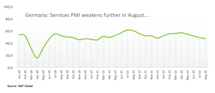 In the docket, final figures saw the Services PMI in Germany at 47.7 in August and 49.8 in the broader Euroland. Later in the session, Retail Sales in the euro area will close the daily calendar.