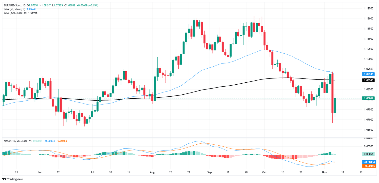 EUR/USD trimmed its wick on Thursday, easing back into the 1.0800 handle after the Federal Reserve (Fed) delivered a widely anticipated 25 bps rate trim. With November's rate call firmly in the bag, rate traders and global markets will immediately pivot to a wait-and-see for December 18, when traders hope the Fed will slap one more quarter-point rate cut on the table to round out the year's Fed rate action.