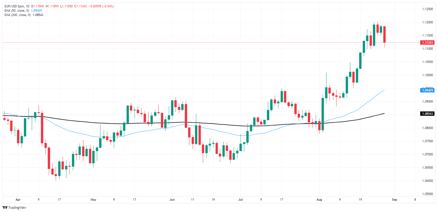 EUR/USD slipped back below the 1.1150 level on Wednesday as bidders struggle to keep the Fiber moving north. The pair is still testing the waters well north of the 200-day Exponential Moving Average (EMA) at 1.0850, but a sustained slide will quickly see price action tumble back to the 50-day EMA near 1.0940.