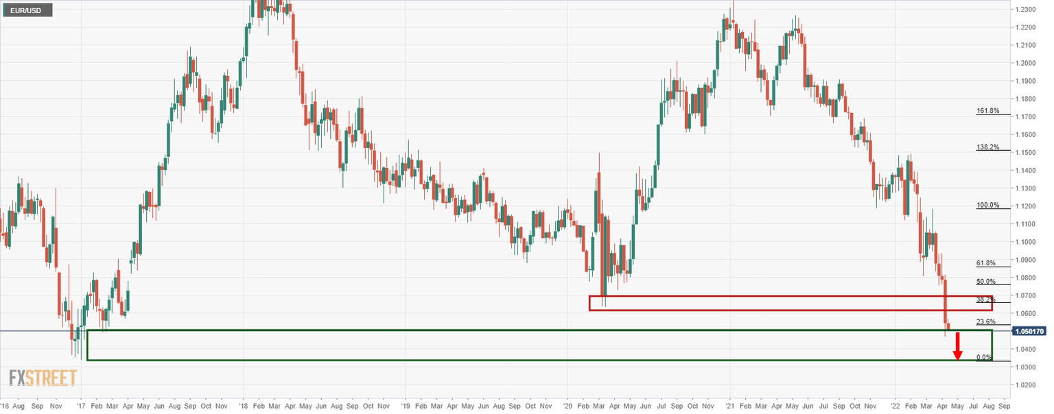 The euro is under pressure in the mid-day US session and is on the verge of a break of 1.05 the figure vs the greenback. Trading at 1.0507, EUR/USD is down some 0.32% and has drifted from a high of 1.0568 to a low of 1.0501 so far at the start of this week.