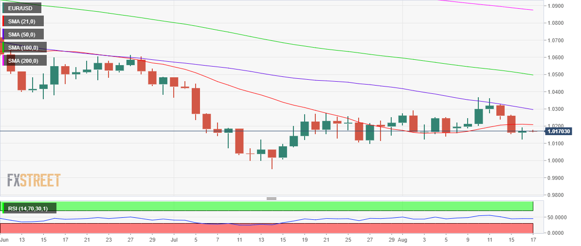EUR/USD Price Analysis: 1.0100 remains in sight below 21 DMA, EU GDP, Fed minutes awaited