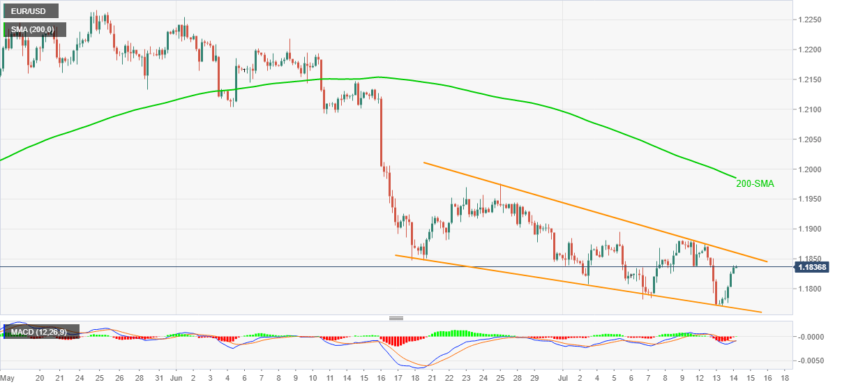 Meanwhile, pullback moves will recall the 1.1800 round figure to the chart before testing the bullish formation’s support line, around 1.1765.