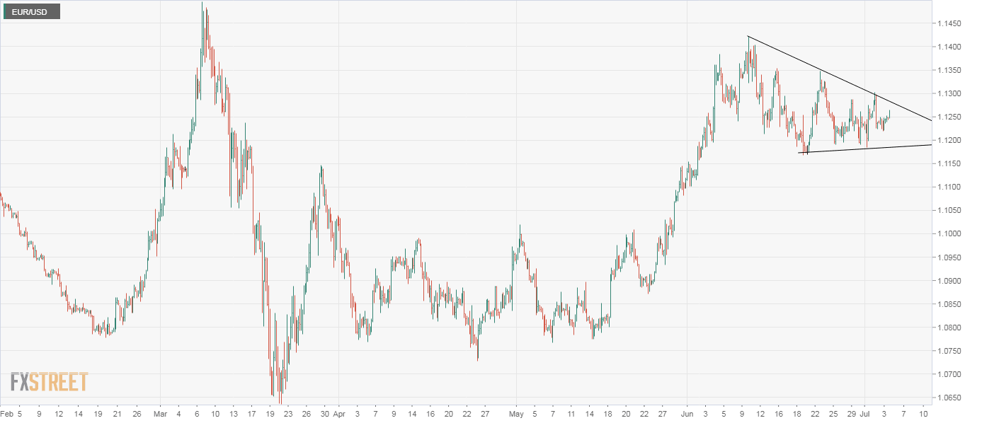 At press time, the pair is trading at session highs near 1.1262, having put in a low of 1.1241 early Monday.