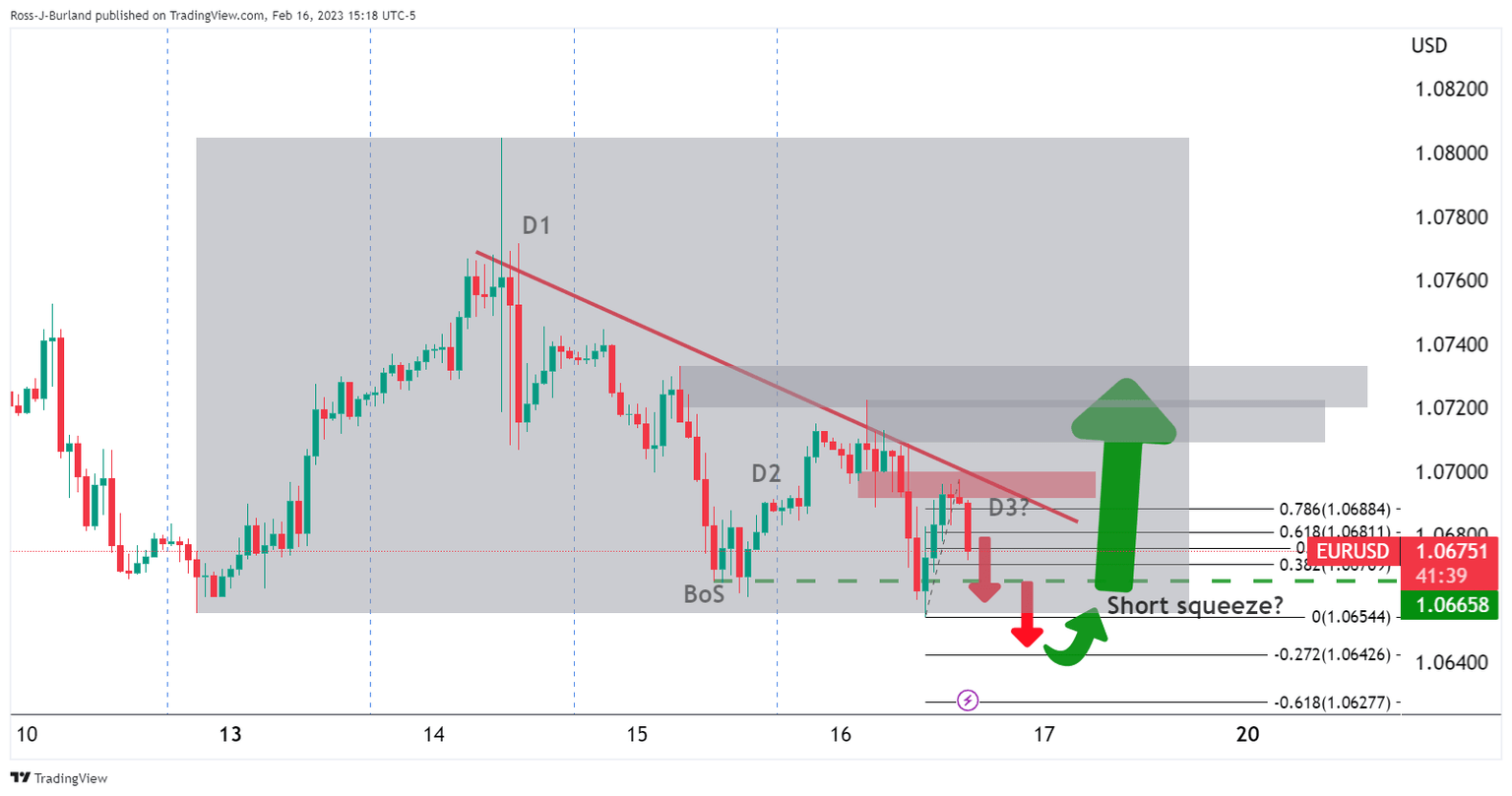 As illustrated, there have been three days of shorts, old and new, with the latest coming in the last hours on Wall Street.1.0650 is on the bear's radar but given the build-up of shorts, a big squeeze could come into play to end the week and to balance the books: