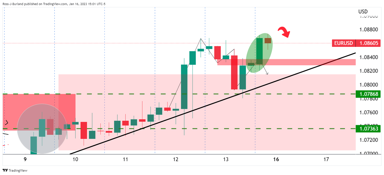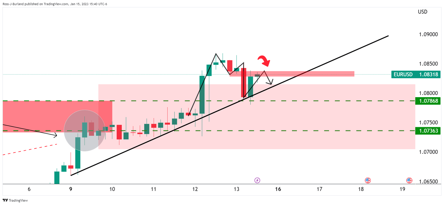 It was stated that The M-formation was compelling in this regard, but the neckline needed to hold for the open to reaffirm a bearish bias and prospects of a break of the trendline and downside potential for the week ahead.