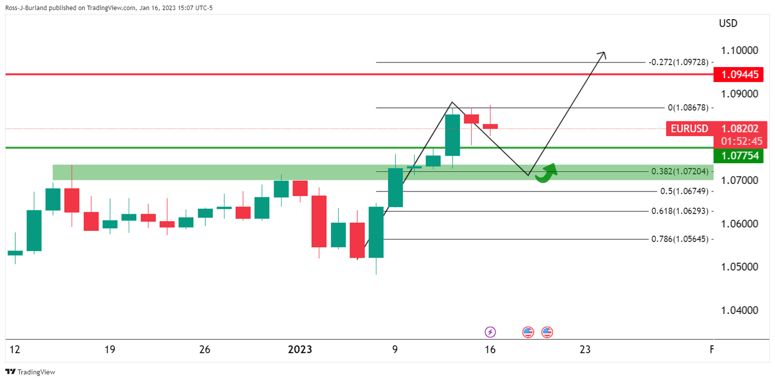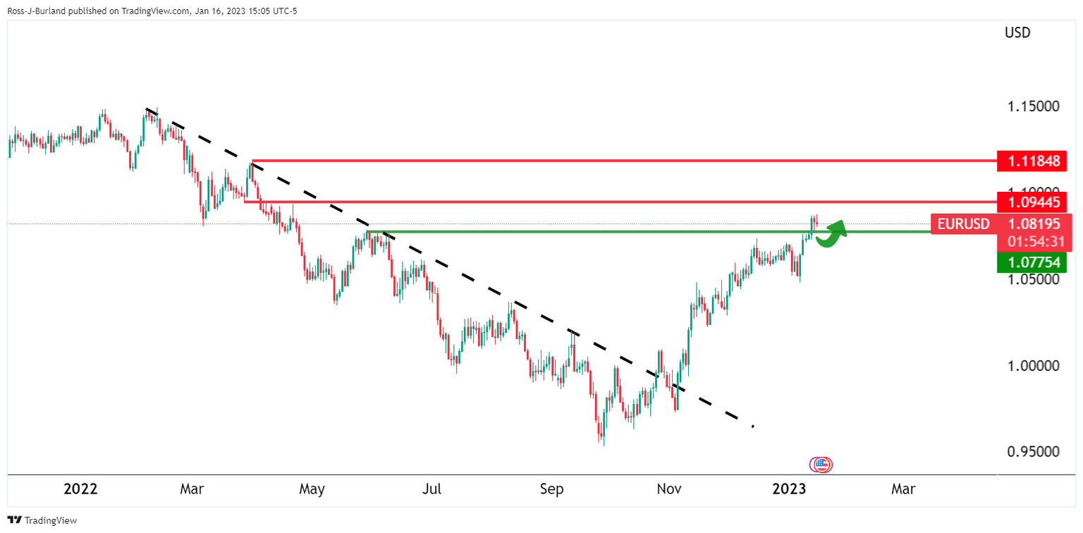 The bulls will be expected to defend the 1.0700 figure on a retest and that could lead to an onward continuation as illustrated in the chart above.