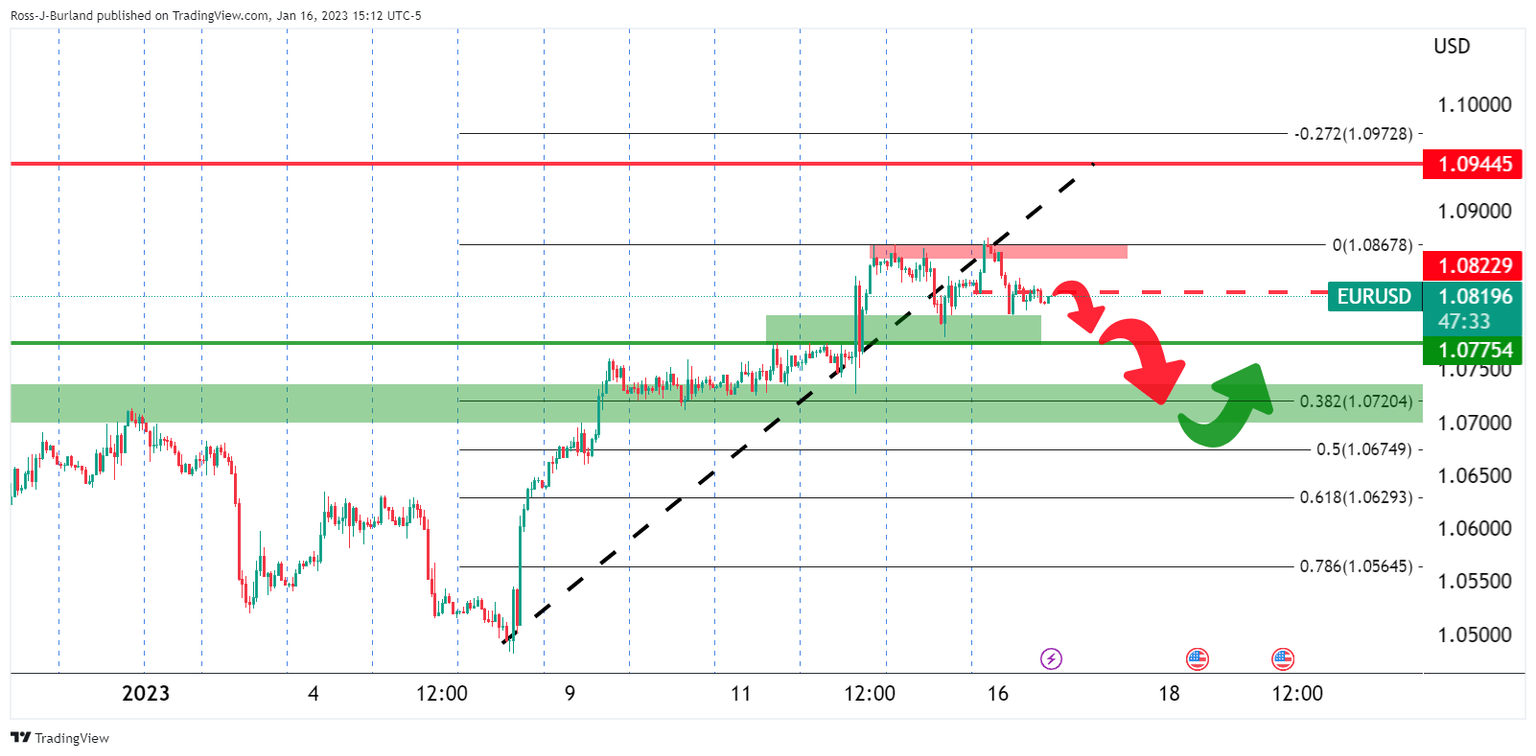 1.0820 structure has been broken and all eyes are on a test below 1.0770 that guards the risk of a drop towards 1.0700/20 support.